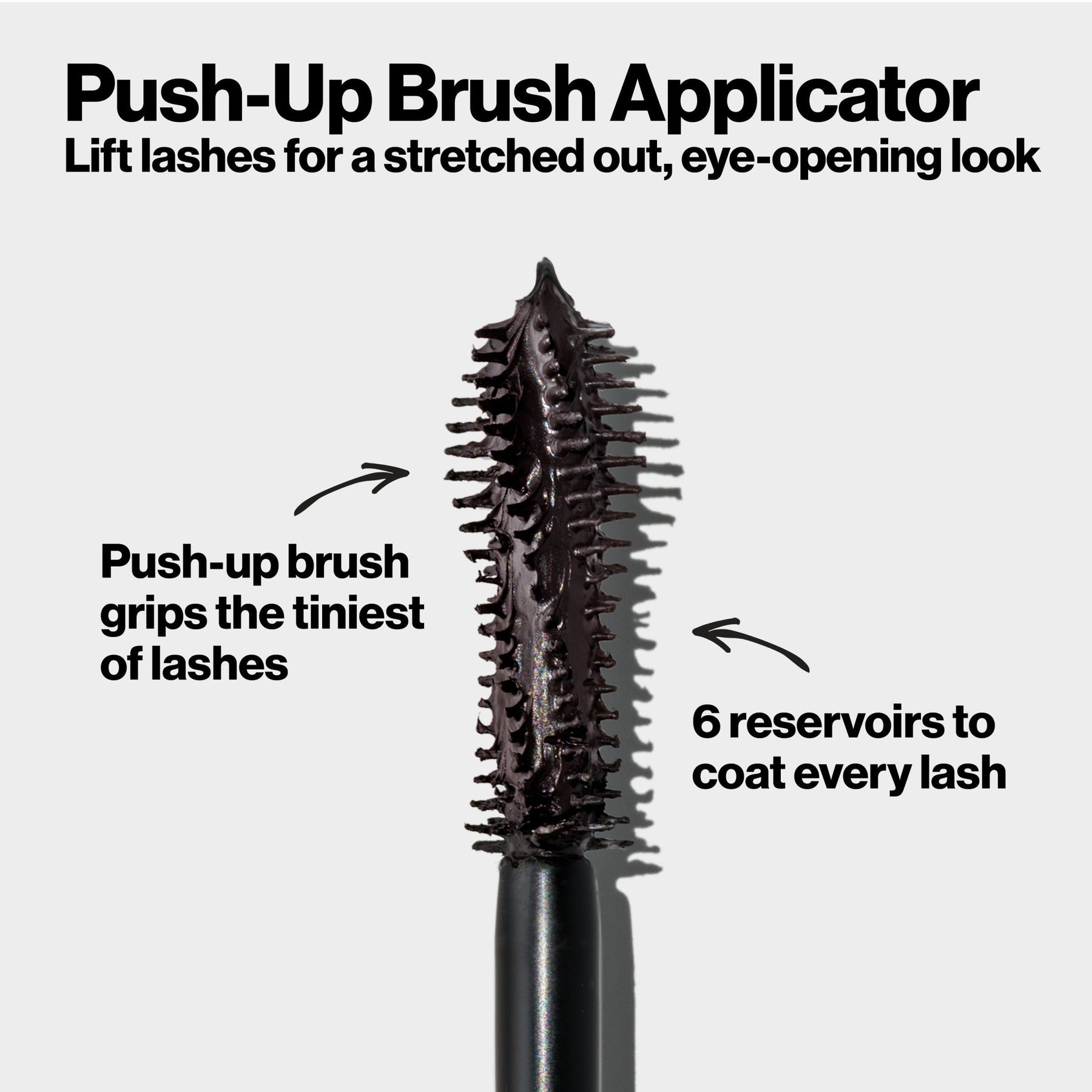 - Six brush reservoirs evenly deliver formula to coat every lash